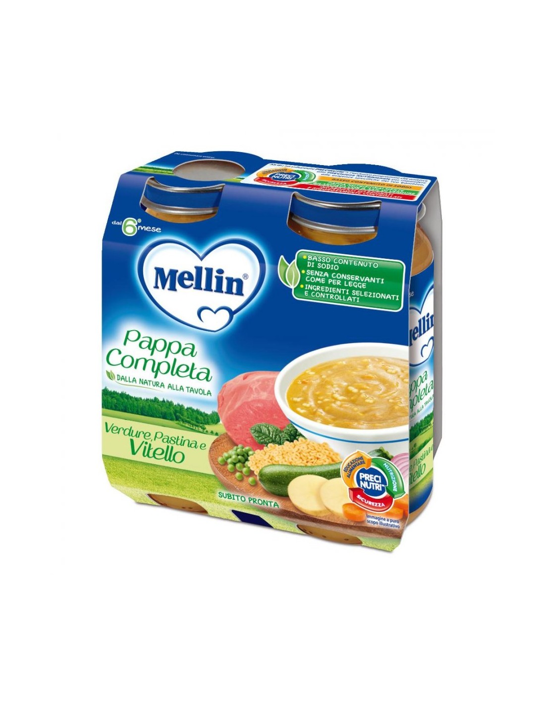 Introduci il tuo piccolo ai primi sapori solidi con la Mellin Pappa Completa Vitello. Questa pappa è stata appositamente formulata per bambini a partire dal sesto mese di vita, seguendo il parere esperto del pediatra. Offre una gustosa combinazione di verdure, pastina e tenera carne di vitello, garantendo un pasto equilibrato e nutriente per la crescita del tuo bambino.