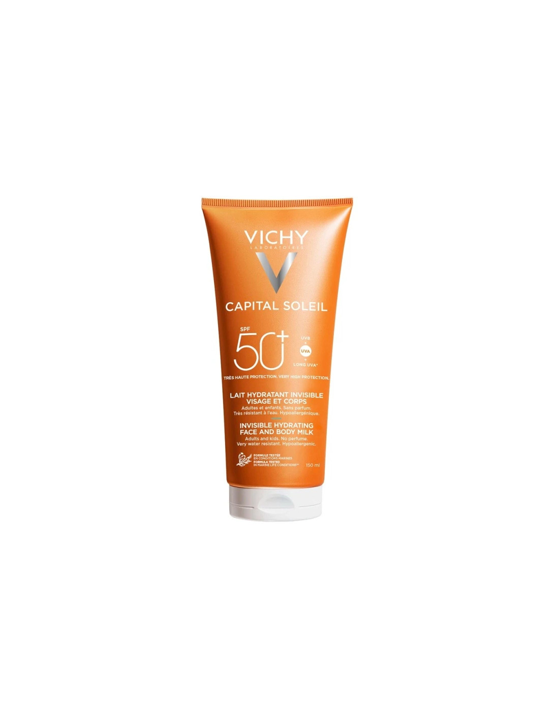 Latte protettivo invisibile idratante, adatto a viso e corpo per adulti e bambini. Molto resistente all’acqua e ipoallergenico. Protegge la pelle a livello cellulare, offrendo comfort e sicurezza sotto il sole.