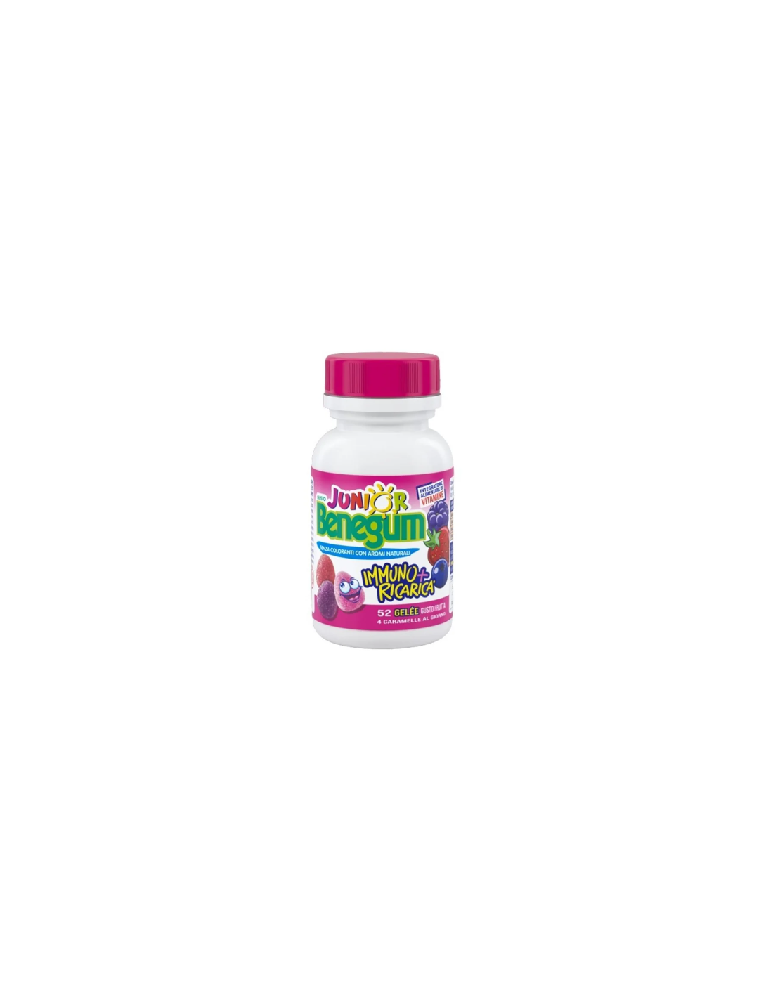 l’integratore di Vitamine, in soffici gelée gusto frutta: un mix multivitaminico che comprende le vitamine C, E, A, D e le principali vitamine del gruppo B;