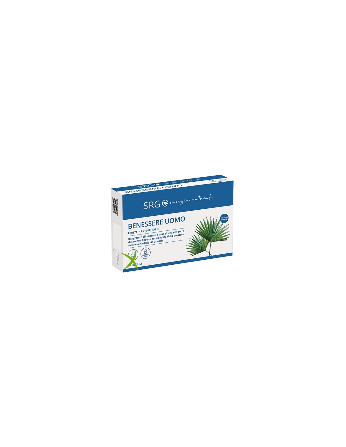 SRG Energia Naturale Benessere Uomo è in integratore alimentare a base di estratto secco di Serenoa repens, utile per favorire la funzionalità della prostata e il benessere delle vie urinarie.