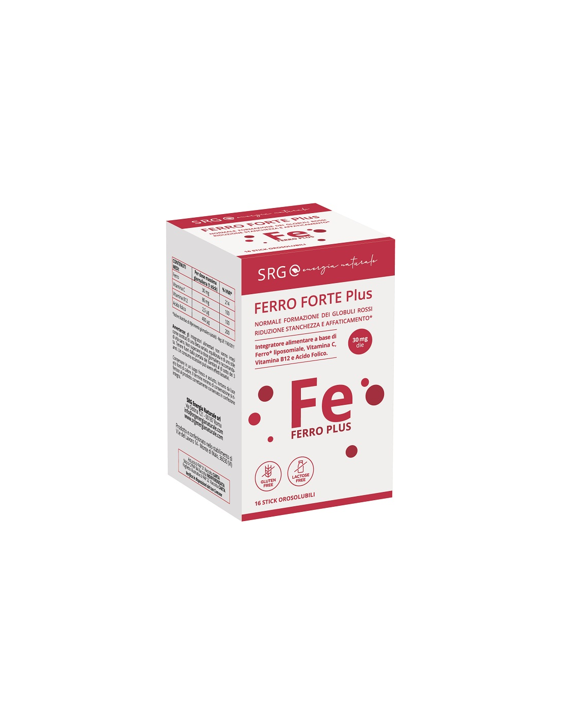 SRG Ferro Forte plus è un integratore alimentare a base di Ferro, Vitamina C, Vitamina B12 e Acido Folico, in pratici stick orosolubili.