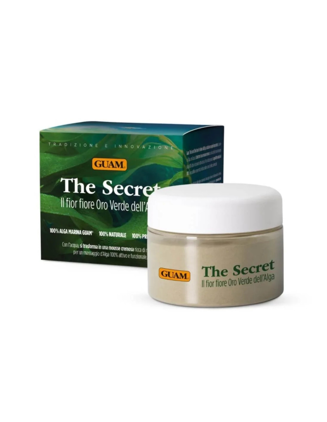 Guam The Secret il fior fiore Oro Verde dell’Alga, racchiude un segreto importante. La polvere d’Alga, con l’acqua, si trasforma in una mousse cremosa ricca di nutrienti per un massaggio d’Alga 100% attivo e funzionale sotto la doccia.