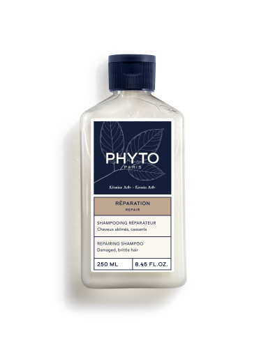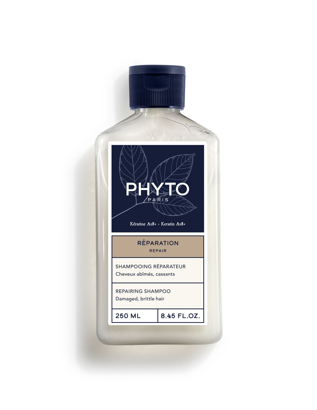 Phytoriparazione deterge e ripara i capelli danneggiati e fragili in modo delicato.