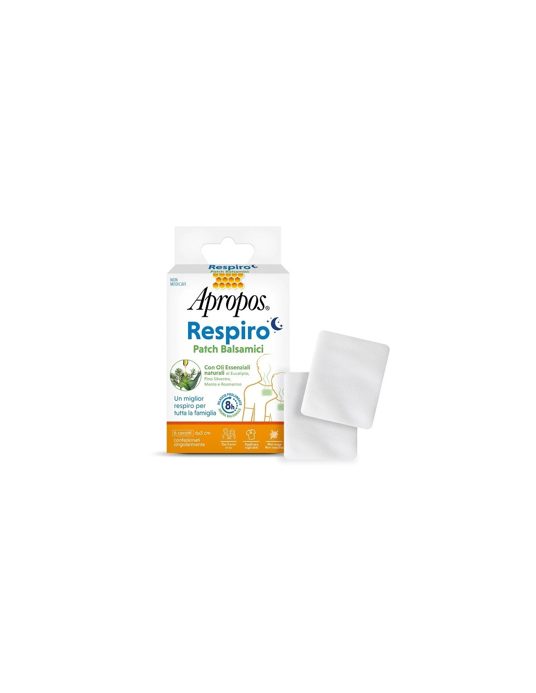 Apropos Respiro Patch Balsamici sono dei patch balsamici, con oli essenziali naturali, sono cerotti ad azione balsamica che applicati sugli abiti rilasciano progressivamente i vapori degli oli essenziali in essi contenuti, fino a 8 ore.
