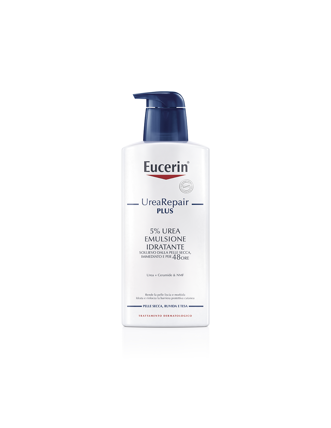 La pelle molto secca può apparire e risultare tesa, arrossata e ruvida. Quando la pelle è secca, la capacità di legare l'acqua e di prevenire la perdita di idratazione si riduce. Eucerin UreaRepair Emulsione Idratante 5% Urea dona alla pelle molto secca e ruvida la cura quotidiana di cui ha bisogno. La formula contiene Urea, Ceramide ed altri Fattori di Idratazione Naturale (NMF) che legano l'acqua e ripristinano la barriera protettiva naturale della pelle per prevenire la perdita di idratazione e il prurito sul corpo. È stato clinicamente comprovato che dona immediato sollievo ed un'idratazione intensa, ritardando la secchezza cutanea e la ruvidezza fino a 48 ore. La pelle risulta liscia e morbida al tatto. Adatta per la pelle dei Diabetici. Anche come trattamento coadiuvante. Gli studi clinici hanno dimostrato che il prodotto garantisce un'ottima efficacia ed è ben tollerato anche dalla pelle estremamente secca e danneggiata.