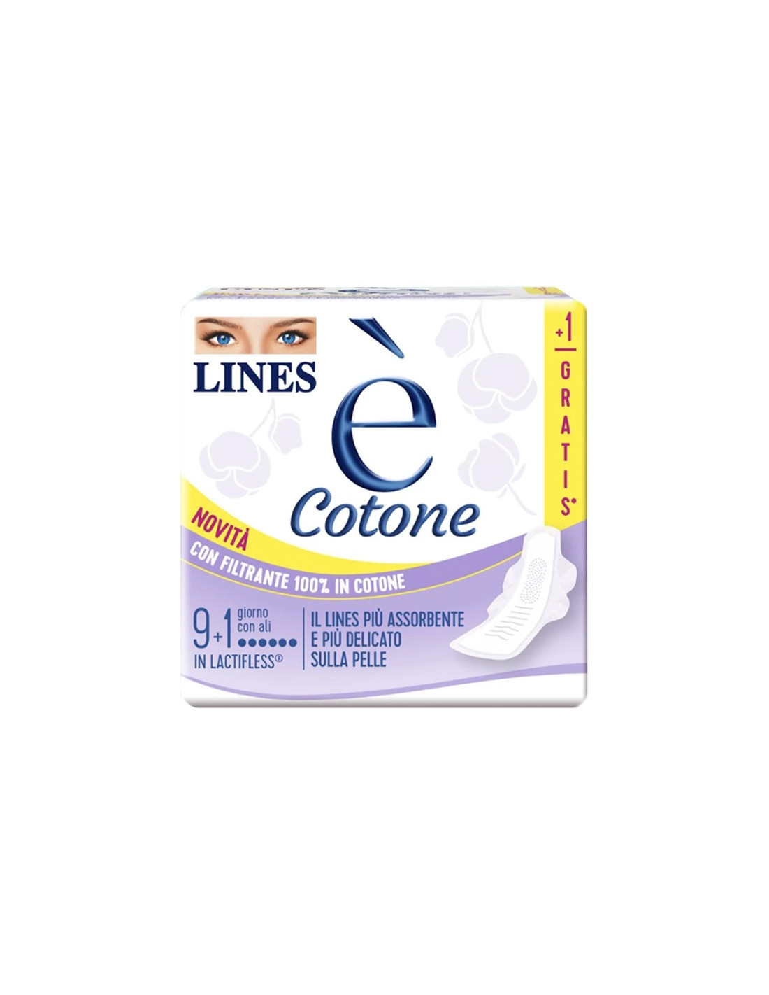 Lines E' Cotone Ali Assorbente Esterno 9 + 1 Pezzi